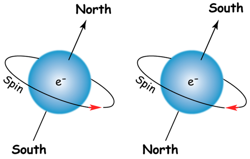 Around the nucleus of the atom there are electrons. Scientists used to think that they had circular orbits, but have discovered that things are much more complicated, involving "sub orbitals" within the "main" orbital, and a maximum of 2 electrons can occupy a sub-orbital where one has a spin of up, the other has a spin of down. There can not be two electrons with spin up (or spin down) in the same sub-orbital (the Pauli exclusion principle). Also, when you have a pair of electrons in a sub-orbital, their combined magnetic fields will cancel each other out.