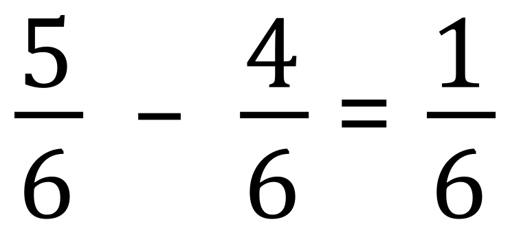 When we subtract one fraction from another, we do exactly the same thing with the denominators if they are not already equal, and then subtract one of the numerators from the other. I will use the same fractions as above, but this time carry out a subtraction: