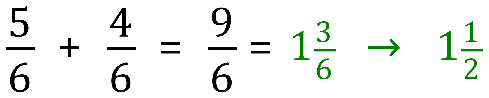 from here we can add up the numerators (notice that we don’t have to add up the denominators) and this gives us the following improper fraction which we would then have to convert to a mixed number: