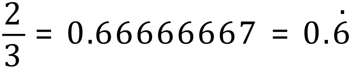 As the image below might suggest, repeating decimals will extend to the right of the decimal point infinitely. There are a couple of ways to display this so as to avoid having to write out a laborious, infinitely long sequence of repeating numbers, which would be totally pointless at least, and almost certainly prone to transcription errors, so why bother?