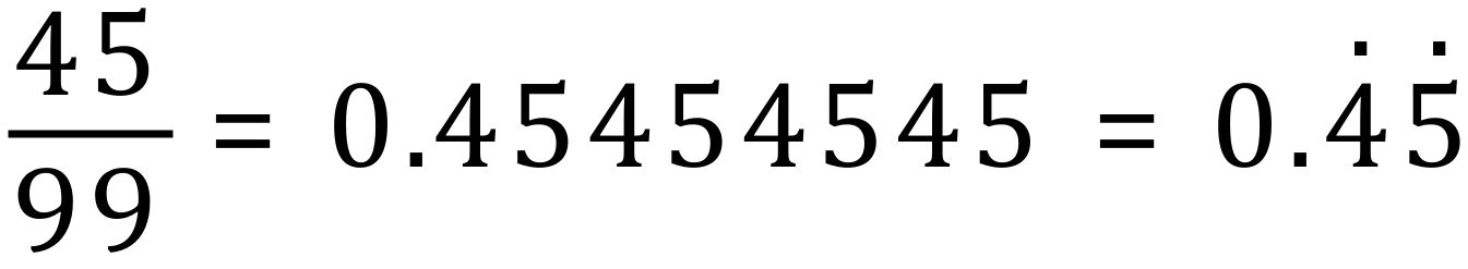 If you have a number with 2 repeating decimals, such as for example the fraction 45÷99, you would show it like this:
