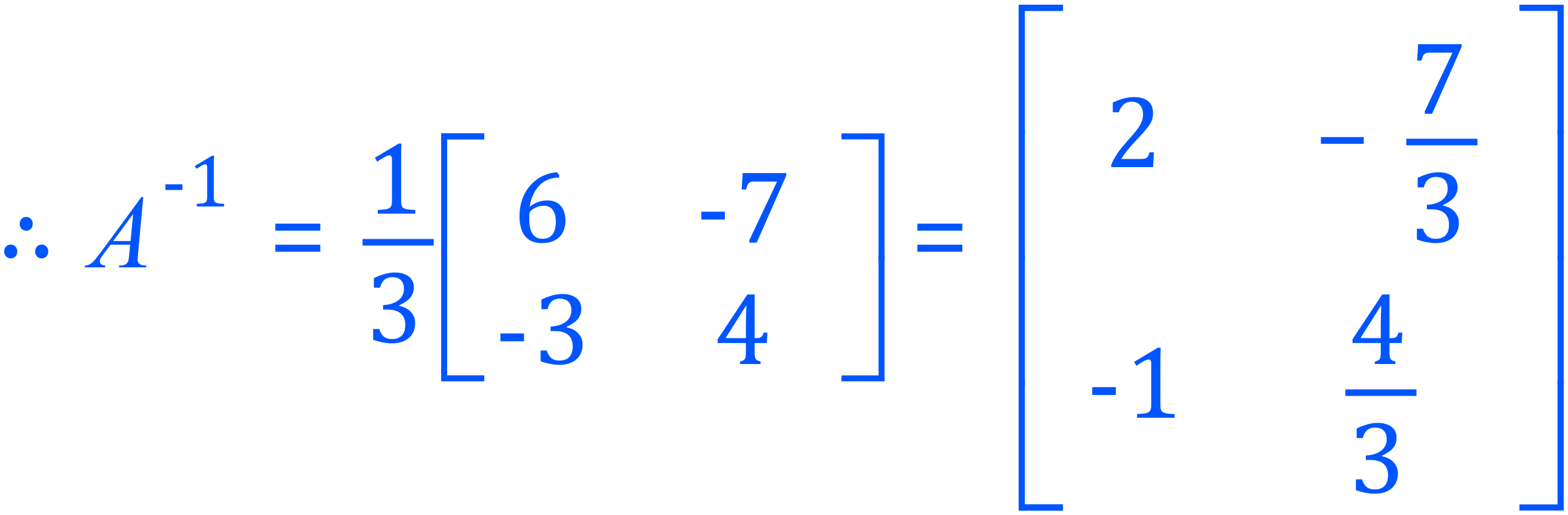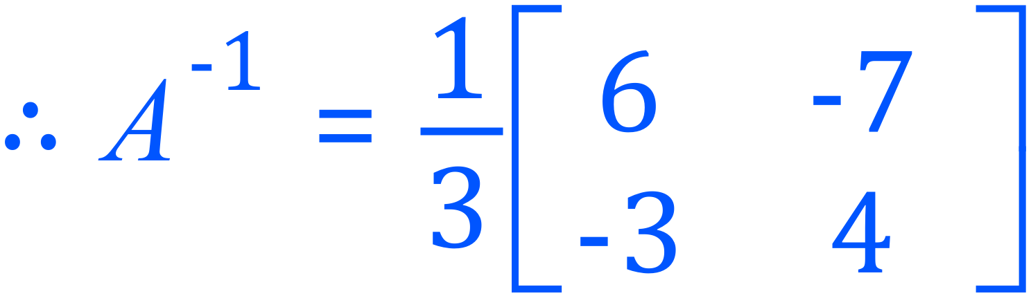 We can see that the determinant is nonzero (3), therefore the matrix A is invertible. Now we carry on with the formula:
