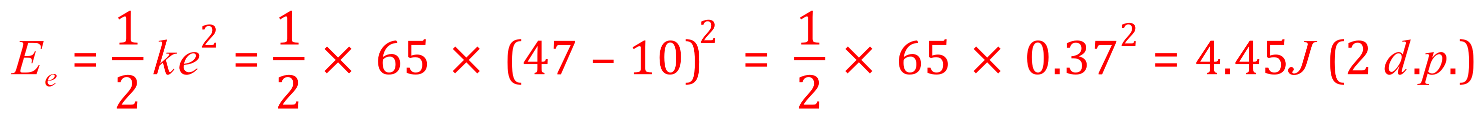 An important thing to note here is the fact that I have explained the extension fully by originally enclosing it in parentheses. The reason I have made it this obvious is that 'e' refers to an extension and is not a final length, also if you work the equation from left to right you will see that initially I quoted the final length and starting length in centimetres (47-10) but converted the answer immediately into metres by dividing by 100. This is why the value being squared is 0.37 and not simply 37.