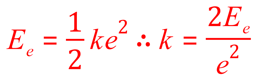 Where 'Ee' is the elastic potential energy, 'k' is the spring constant in newtons per metre and 'e' is the extension/compression applied in metres.