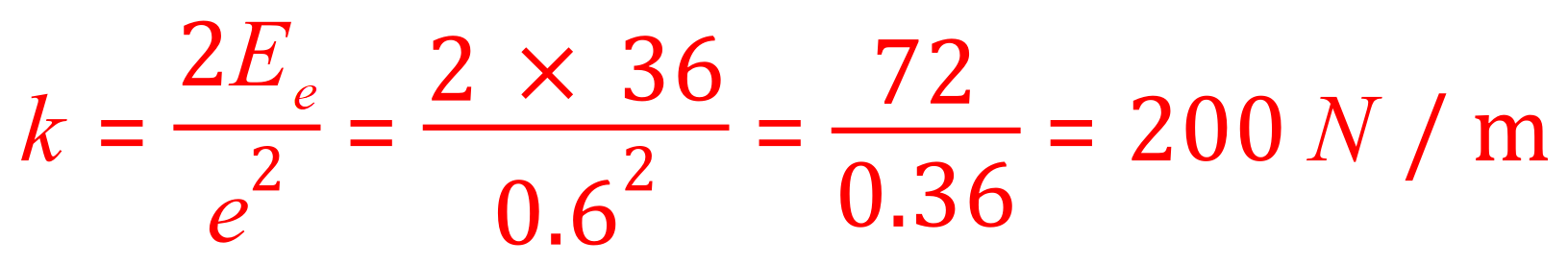 Q. A spring is stretched by 60 cm which transfers 36 J of energy into its elastic potential energy store. Calculate, from this data, the spring constant in newtons per metre.
