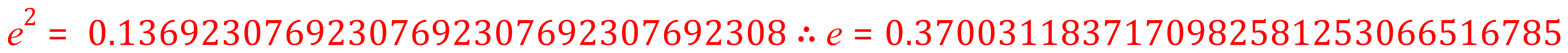 You are being asked to find the value of 'x'. Let's put some values into the equation now that we have rearranged it in terms of 'e' squared: