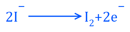 Q. An electrolysis setup is created and an electrical current is passed through a dilute solution of aqueous Potassium Iodide.