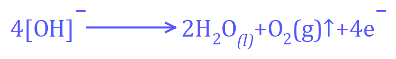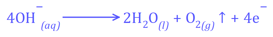 From this we should be able to establish that the positive electrode (the anode) will attract the negative Hydroxide ions. At the anode these ions will be oxidised to water and Oxygen gas: