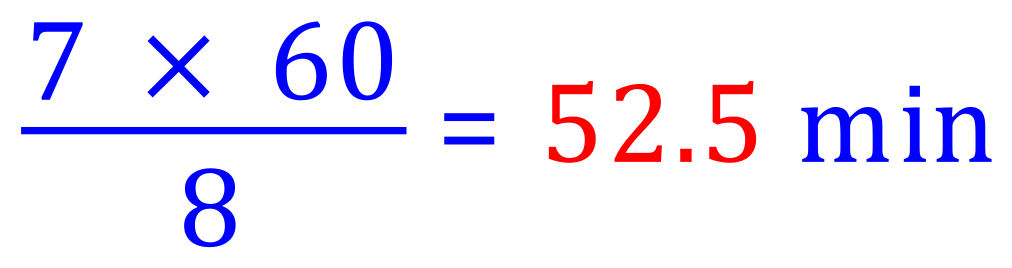 8 half lives in 7 hours, therefore the half life of the isotope is: