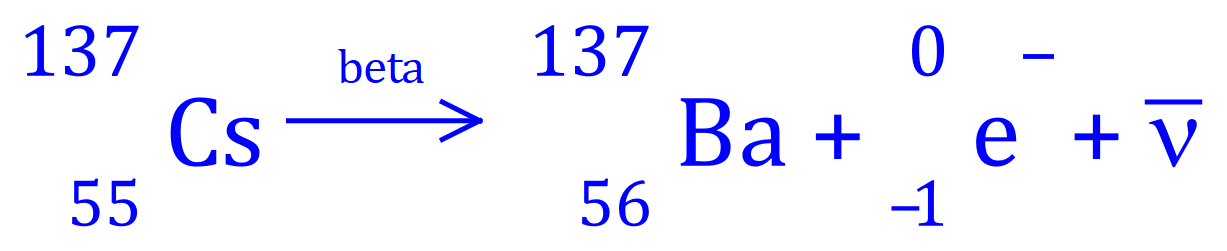 Q. Caesium-137 decays to an isotope of Barium-137. From this information alone, suggest the type of decay taking place. Show the equation for your decision.