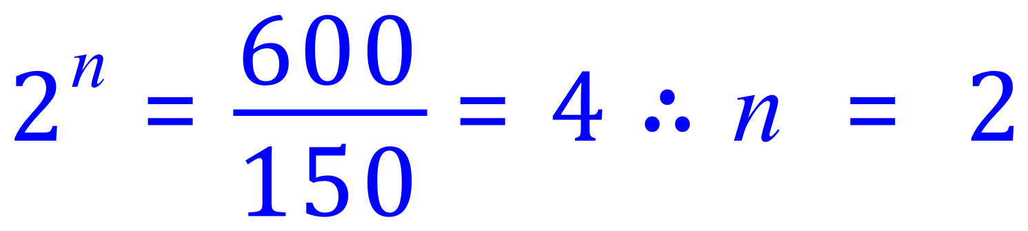 Q. A radio isotope has an initial activity of 1200Bq, after 7 hours it has decreased to 4.6875 Bq. What is the half life of the isotope?
