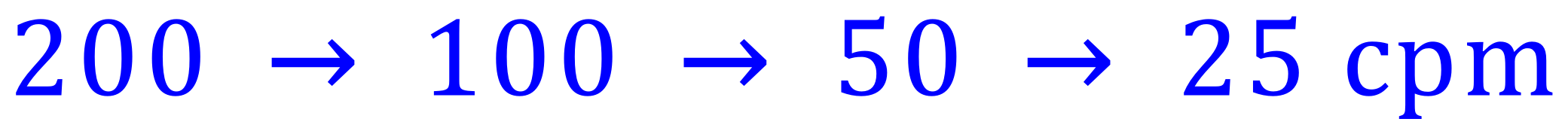 Q. A scientist records an activity of 200 counts per minute coming from a radioactive source. This measurement takes place at 12:00pm. At 3.pm she takes another reading which is 25 counts per minute. What is the half life of the substance?
