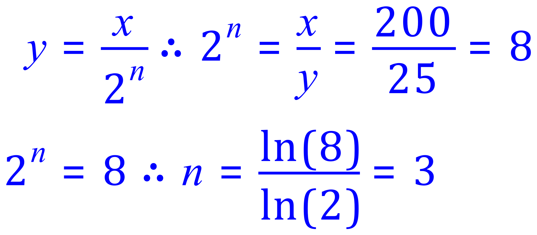 If ..... initial mass = "x", final mass = "y" and number of half lives = "n" :