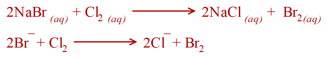 Yes - if you pass Chlorine water through a solution of Sodium Bromide, Bromine will be displaced in solution which will turn orange brown. this is because Chlorine is more reactive than Bromine and will displace Bromine from solution forming a solution of Sodium Chloride with Bromine displaced into it.