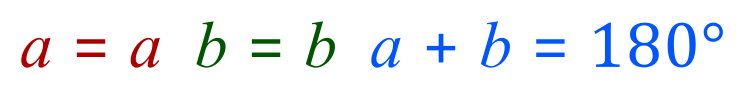 - Pairs of angles 'a+b' are angles on a straight line and will add up to 180°