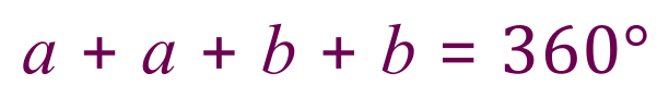 - The total of all 4 angles 'a' 'a' 'b' and 'b' comes to 360°