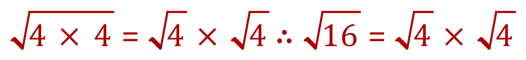 We do not need to go any further to see that the square root of 16 is indeed the same as 2×2, of course being the number 4. If we try a slightly more complicated example we should arrive at the same type of result: