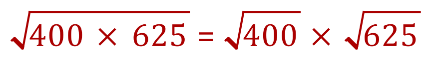 I have chosen these numbers purely because I know off the top of my head what the results are, the square root of 400 is 20 and the square root of 625 is 25. 20×25 is 500 so therefore the product 400×625 should be equal to 500 squared.