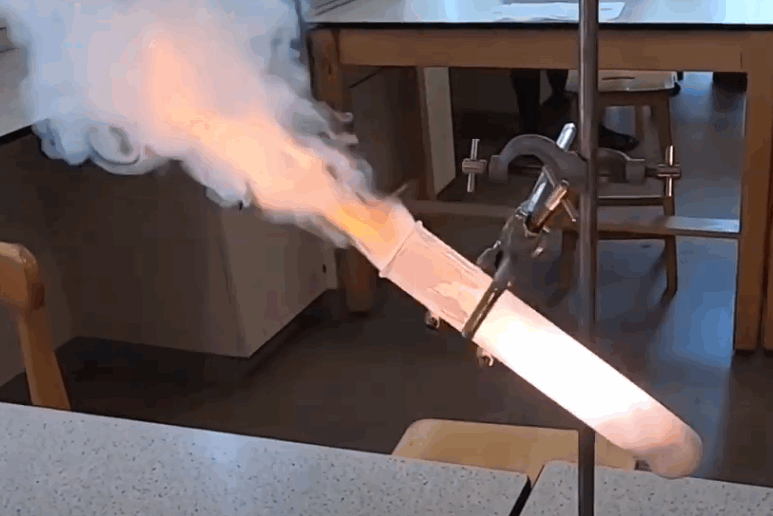 A small amount of potassium chlorate is placed in a borosilicate boiling tube and heated until molten. The boiling tube, clamped at an approximate 45° angle and aimed at a shield, then has a jelly baby placed using tongs at the opening. The jelly baby slides down into the molten potassium chlorate and the oxidation reaction starts immediately.